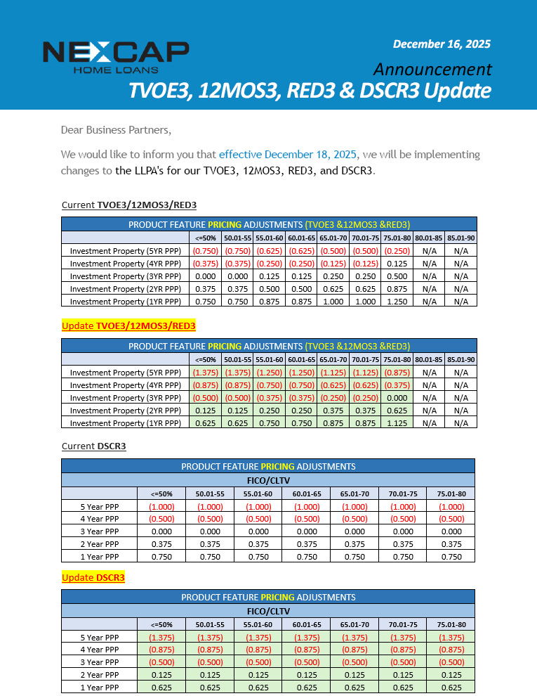 TVOE3, 12MOS3, RED3, & DSCR3 LLPA Changes