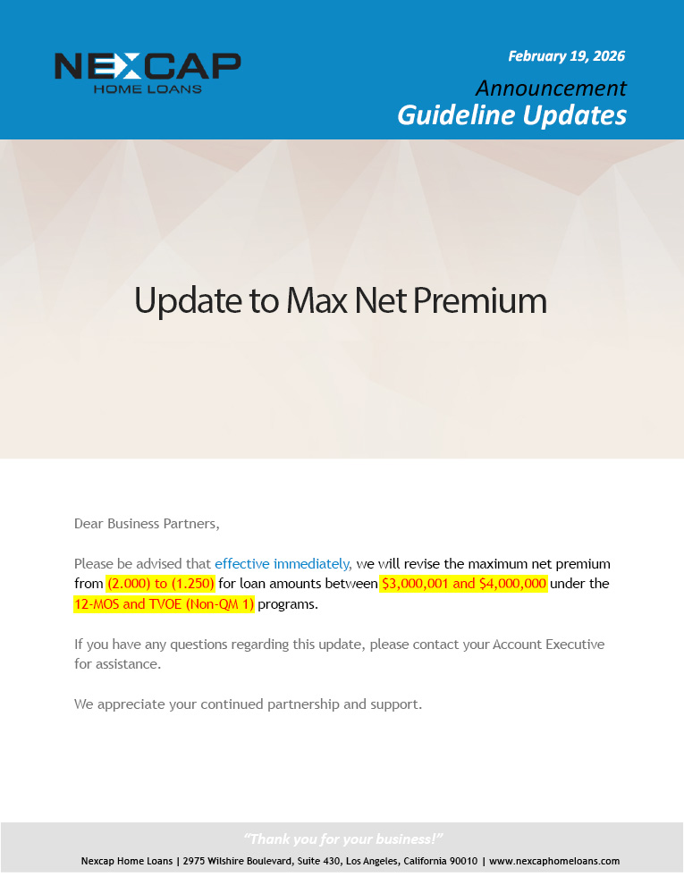 Update to Max Net Premium