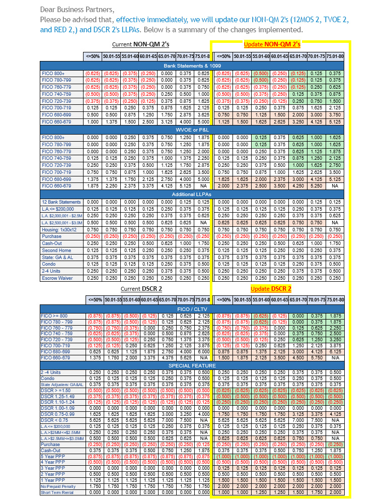 NON-QM 2's / DSCR 2 LLPA Update